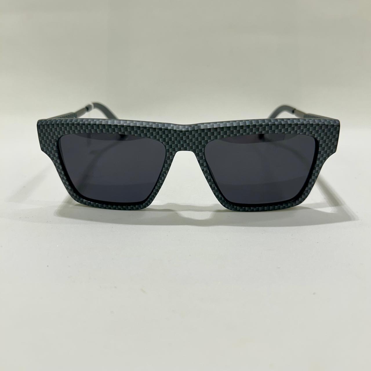 Óculos quadrado fibra de carbono com lente cinza escura, polarizada e proteção UV 400.